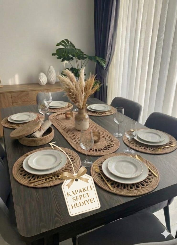 Lüks Jüt Hasır Supla Runner Takımı | 6+1 Şekilli Amerikan Servis Seti 8BXQ9P21H9(Kopya-M95)(Kopya-EVL)